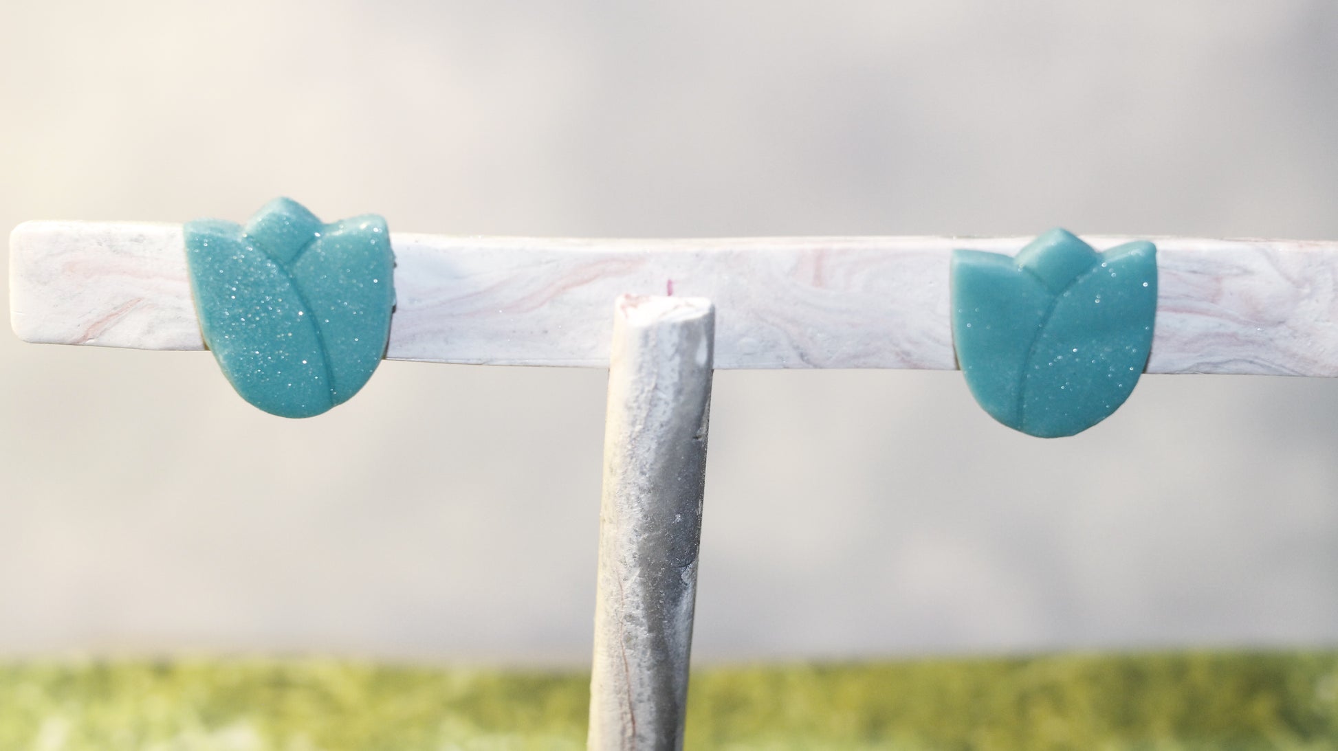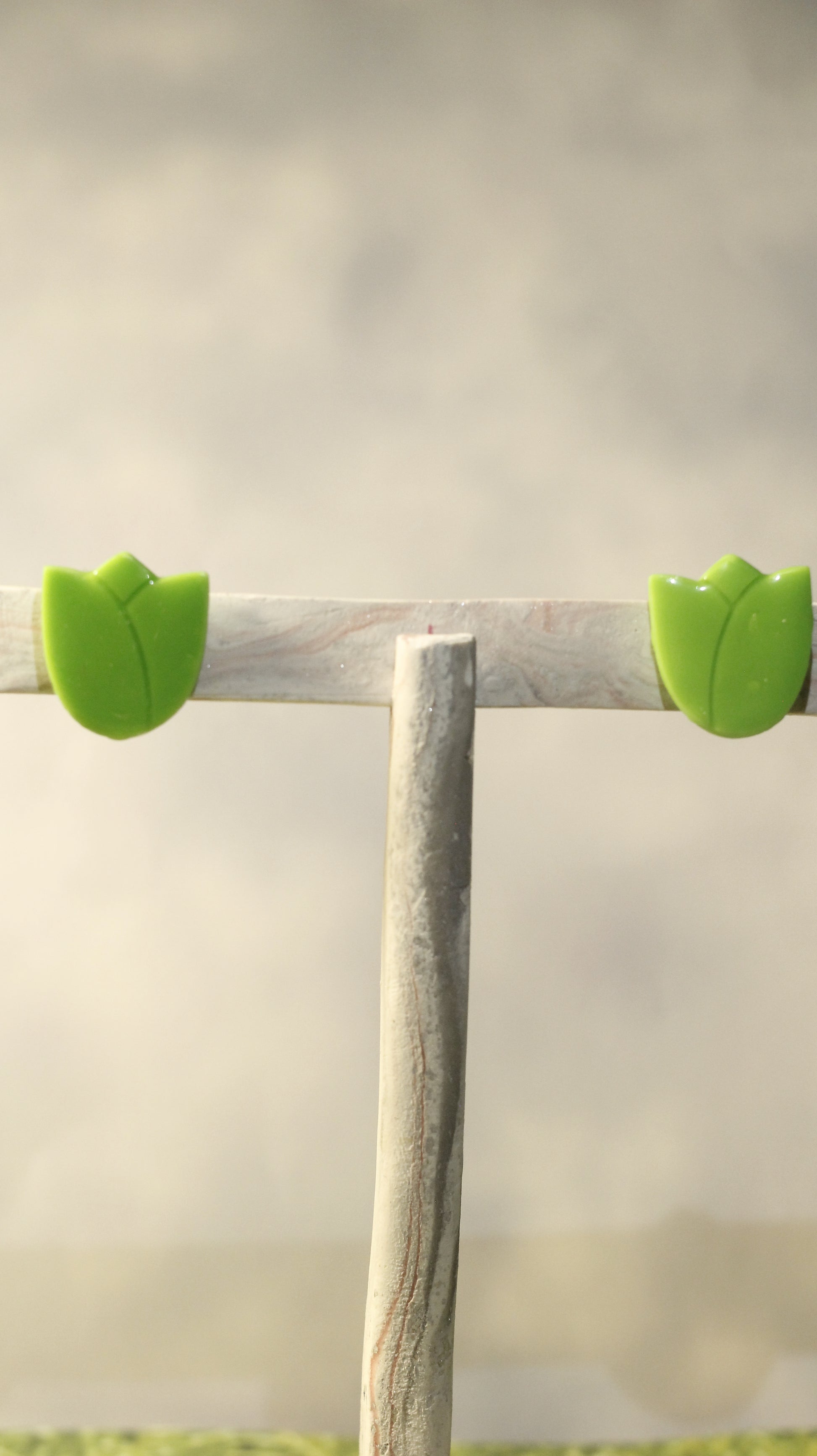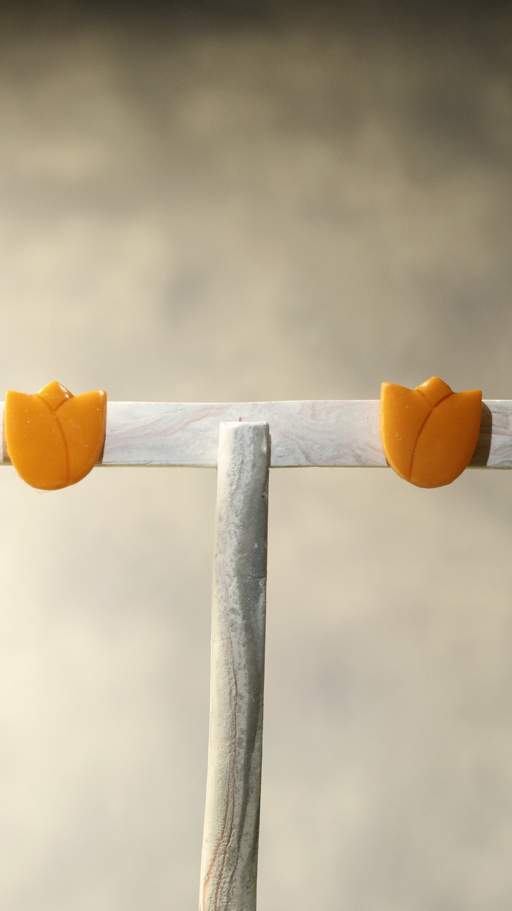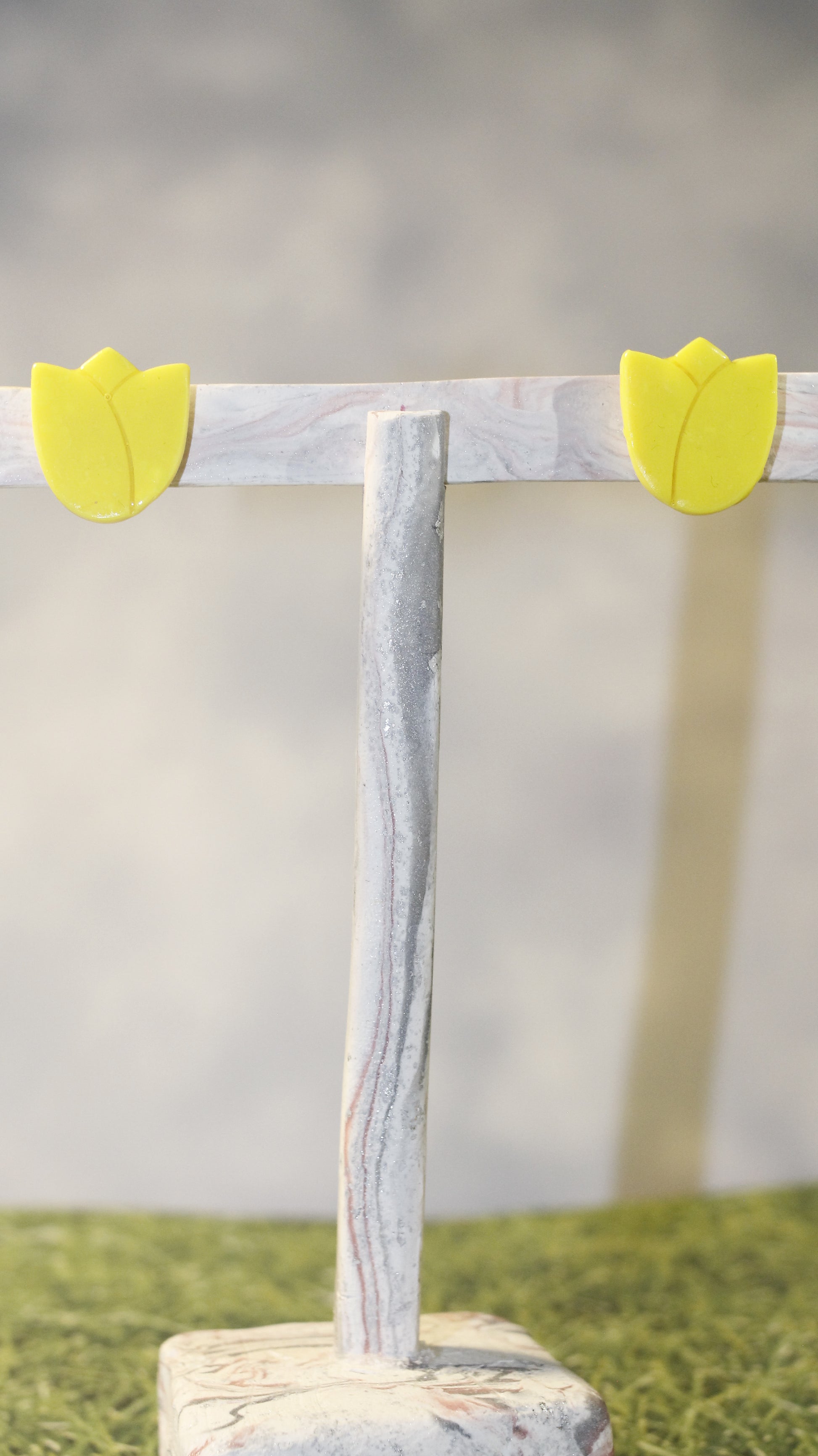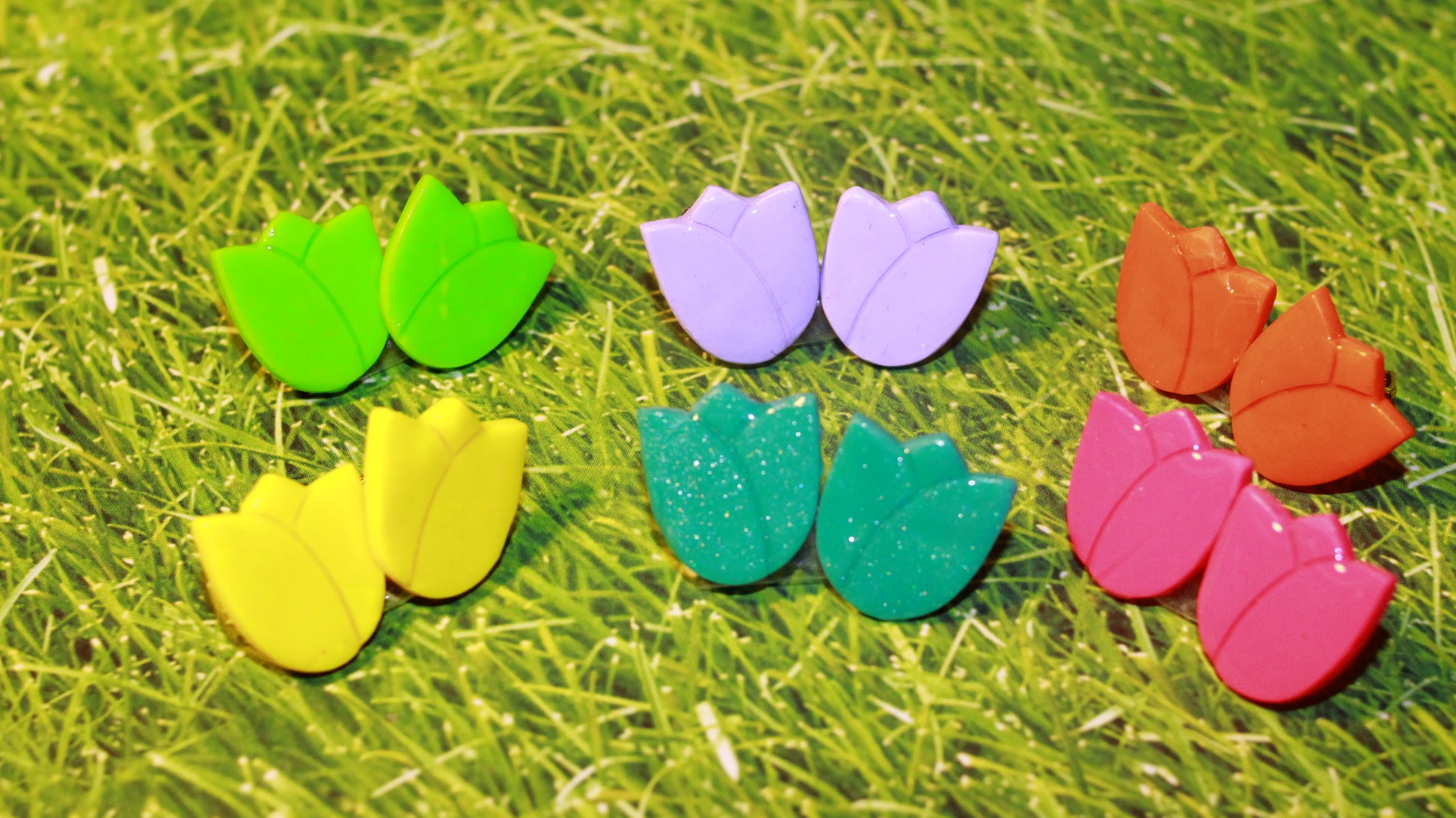 These lovely studs will be sure to brighten up any wardrobe! Lightweight and colorful, the studs are made of clay and coated with a clear resin. Earring stud is gold-plated and comes with both metal and rubber backing.