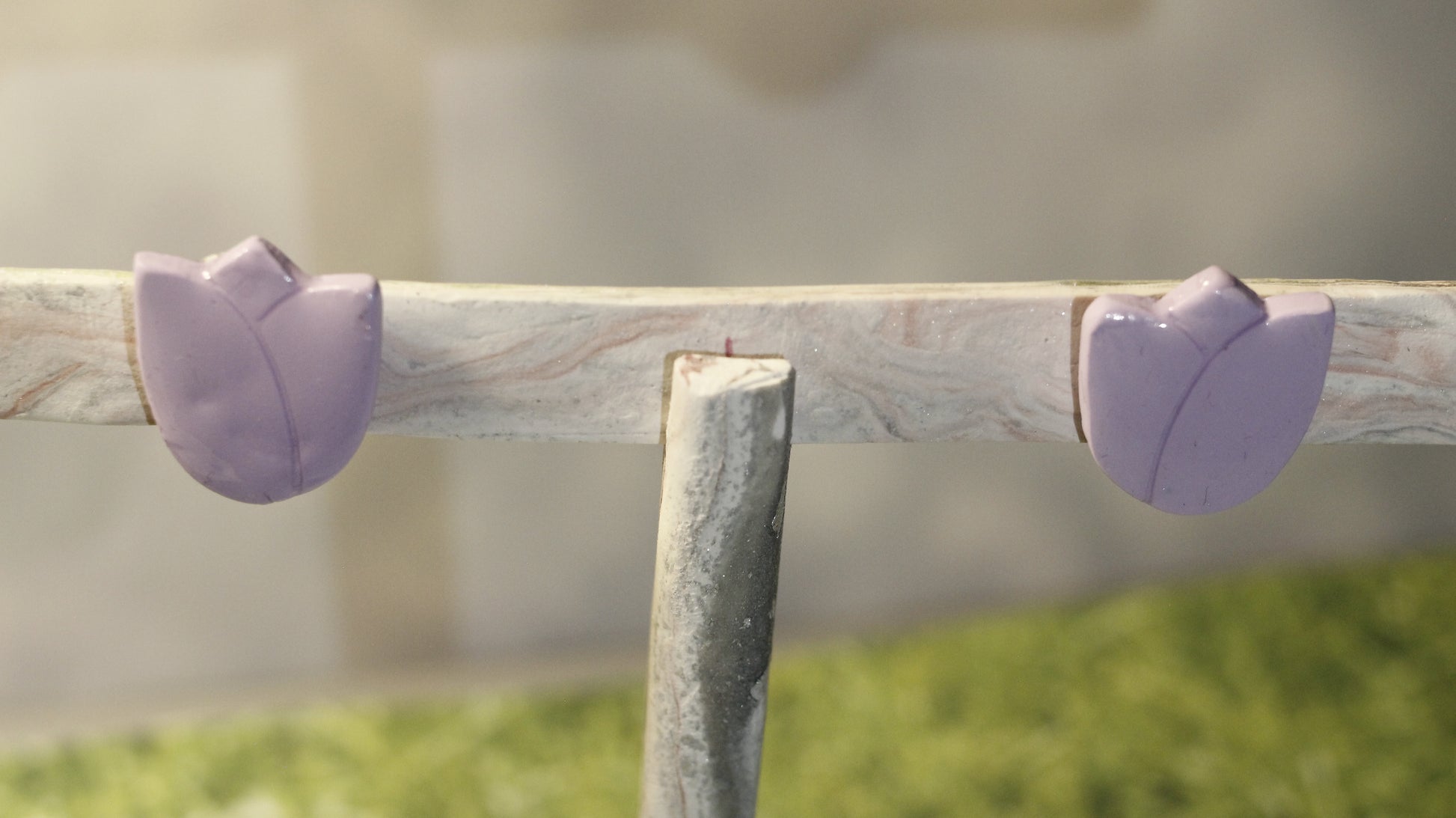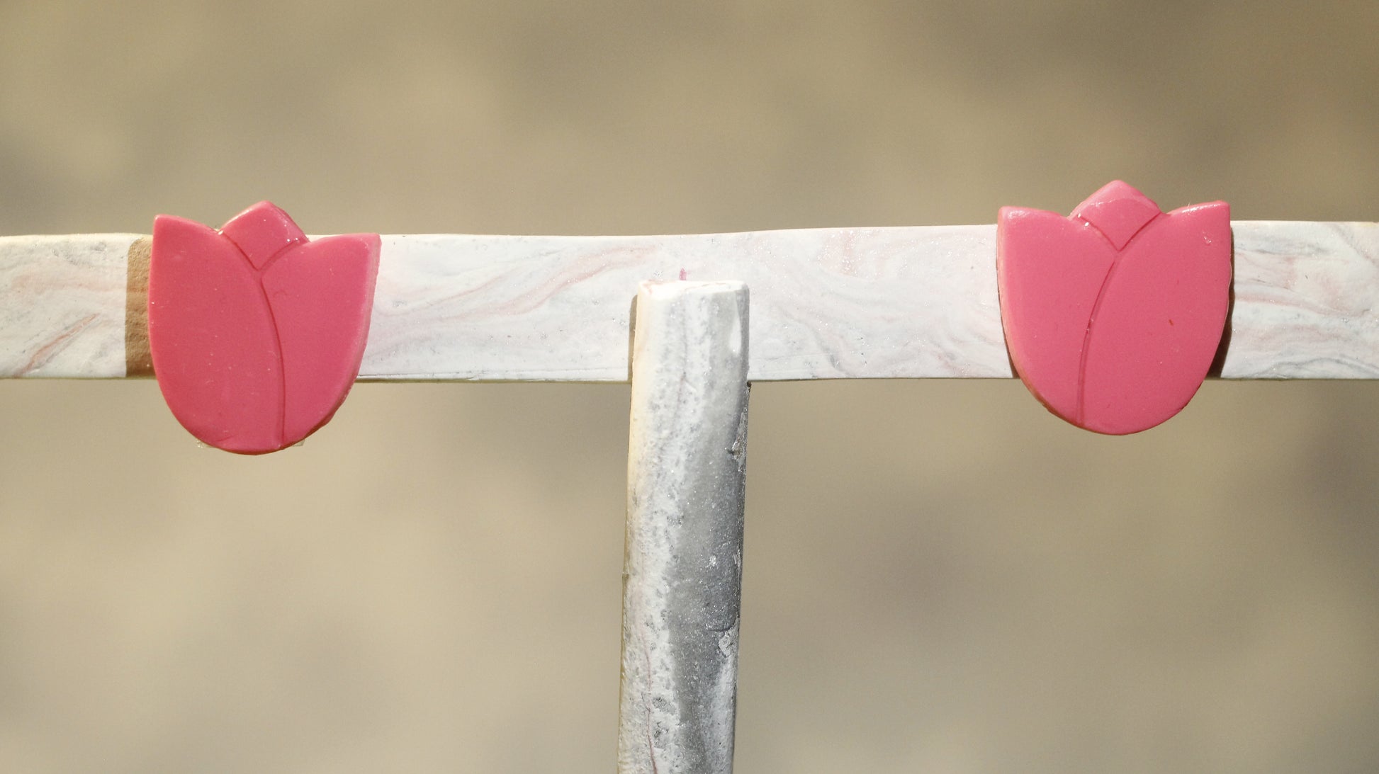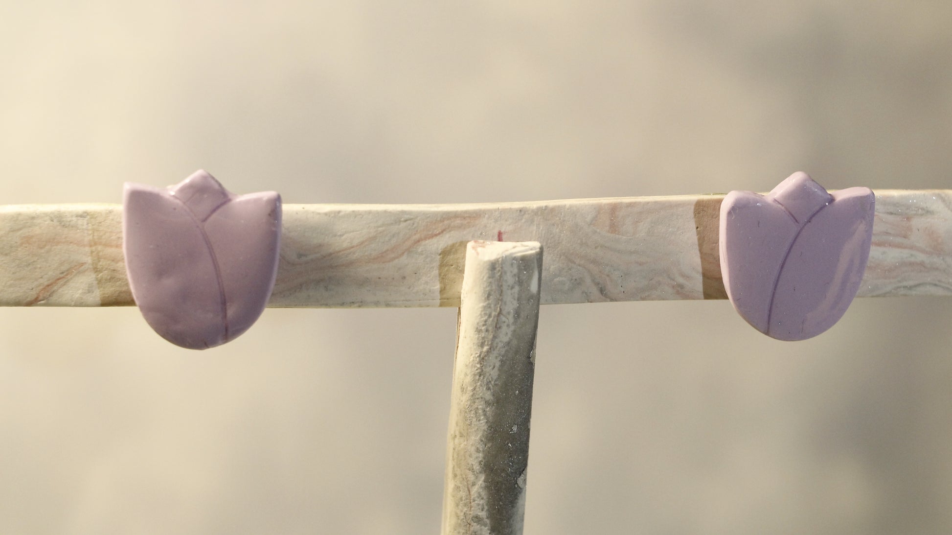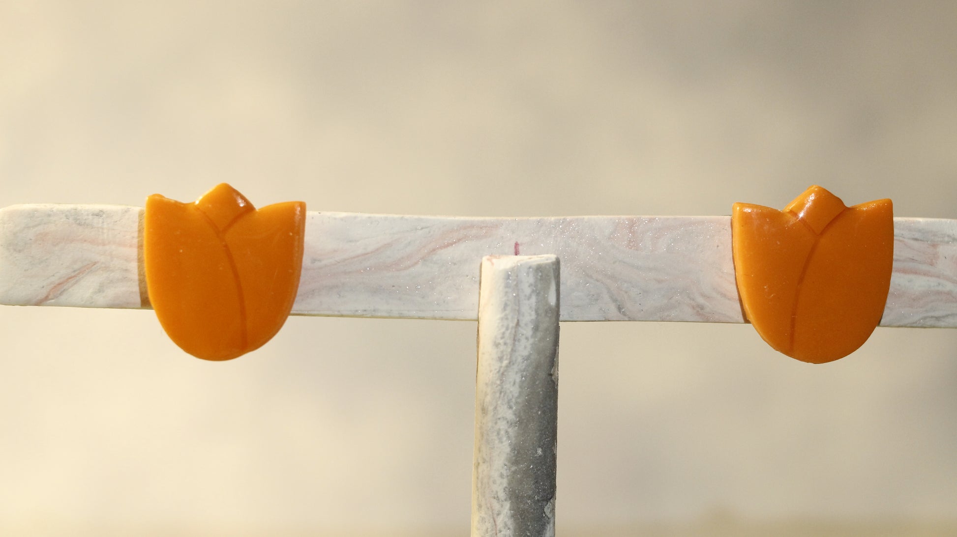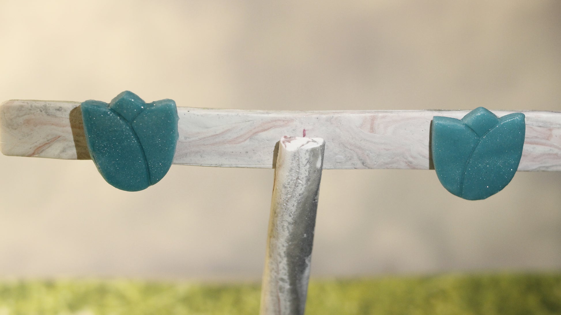 These lovely studs will be sure to brighten up any wardrobe! Lightweight and colorful, the studs are made of clay and coated with a clear resin. Earring stud is gold-plated and comes with both metal and rubber backing.